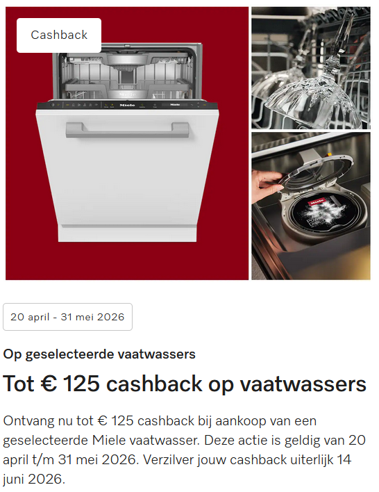 Miele cashback acties t/m 31 mei 2026
