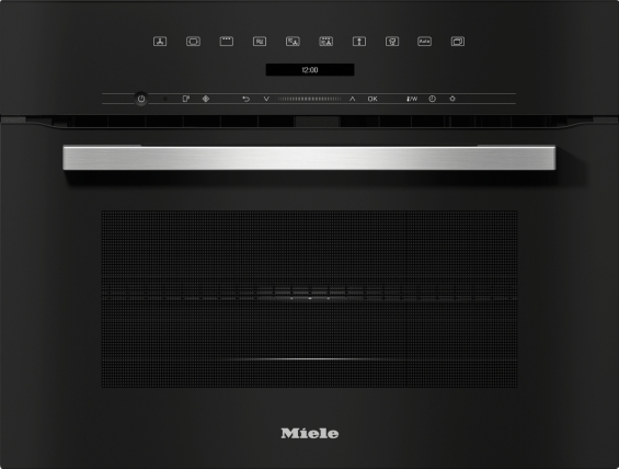 Miele H 7145 BM, Compacte oven met geïntegreerde magnetron in elegant zwart design met automatische programma’s en gecombineerde functies.
